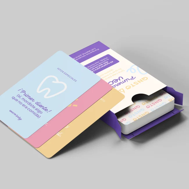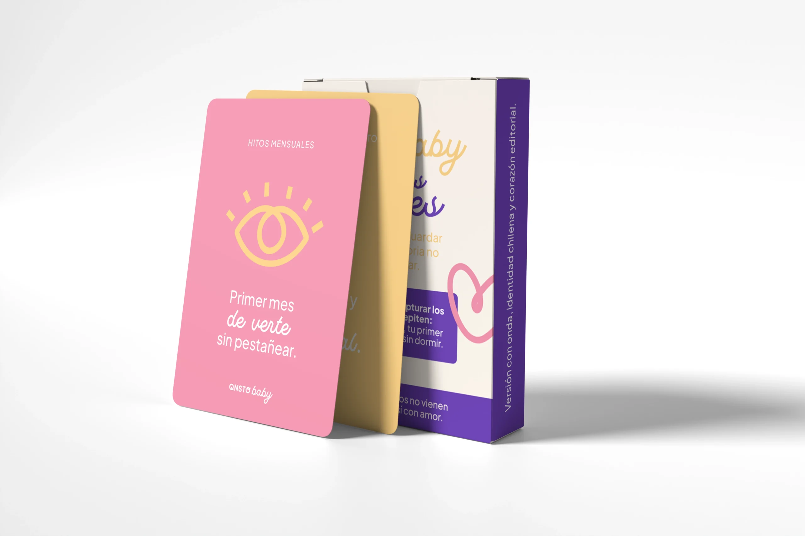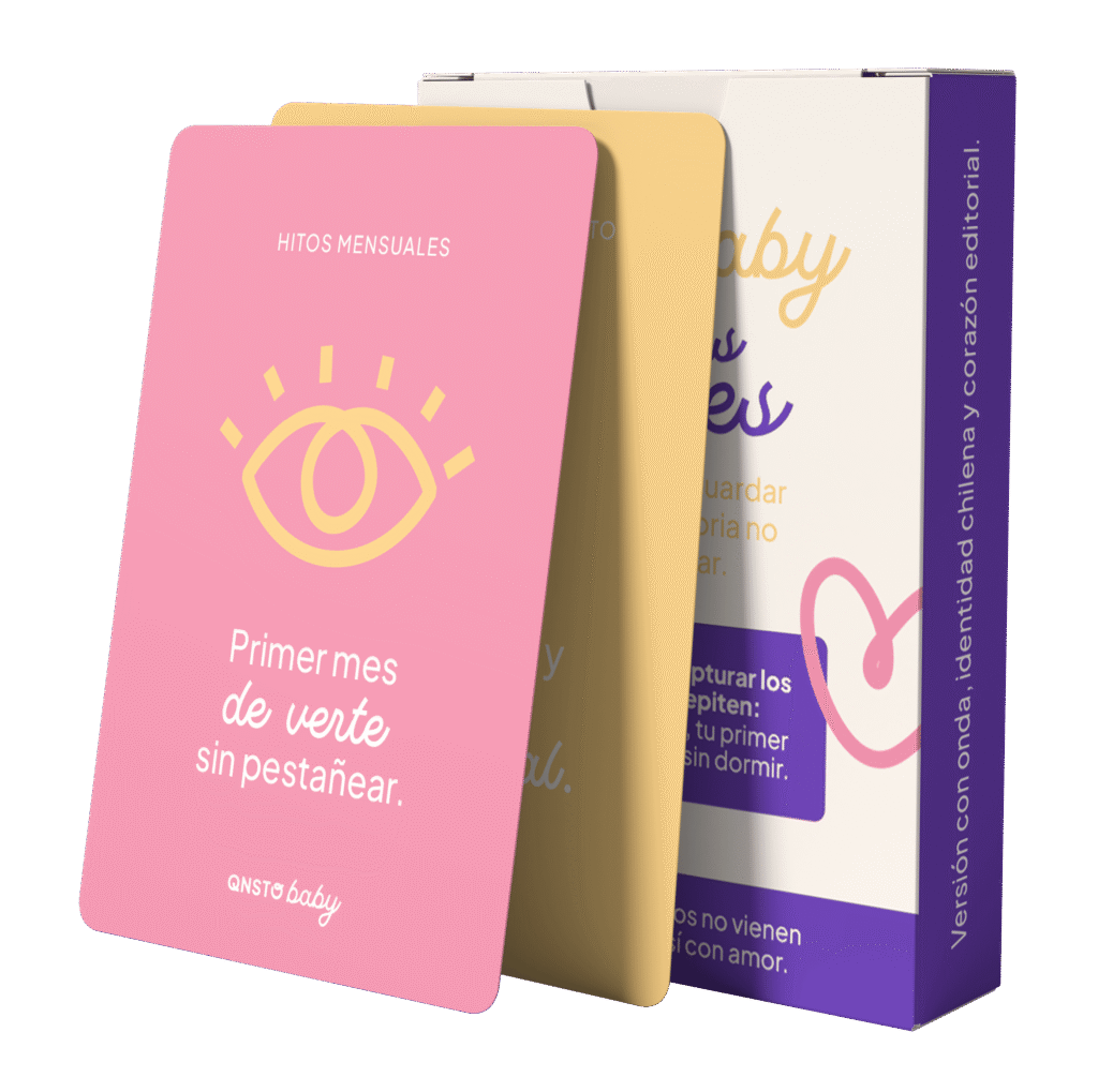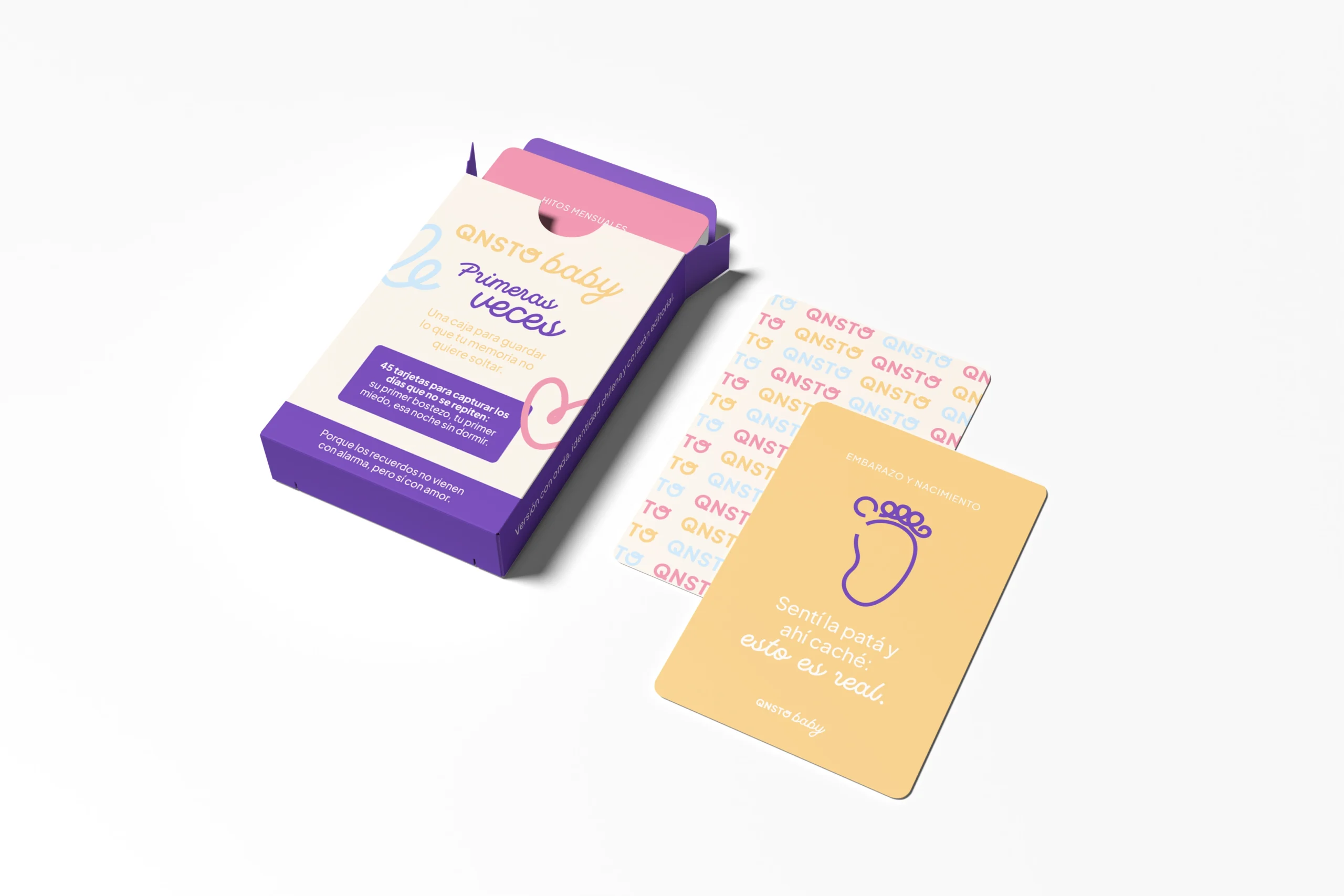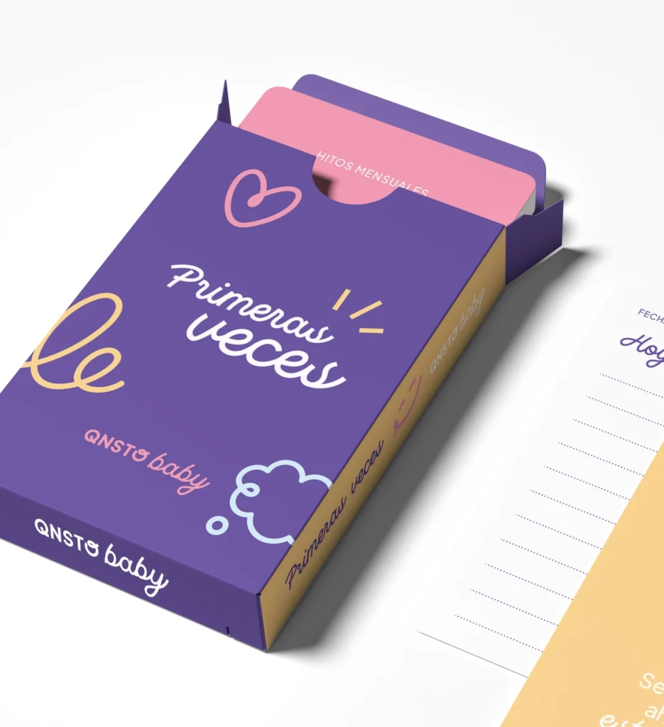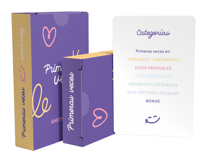 QNSTO Baby es un set de tarjetas que acompaña cada instante irrepetible en la vida de tu nuevo y gran amor: sus primeros pasos, cada mes cumplido, sus primeras risas y todos esos recuerdos que merecen quedarse para siempre.